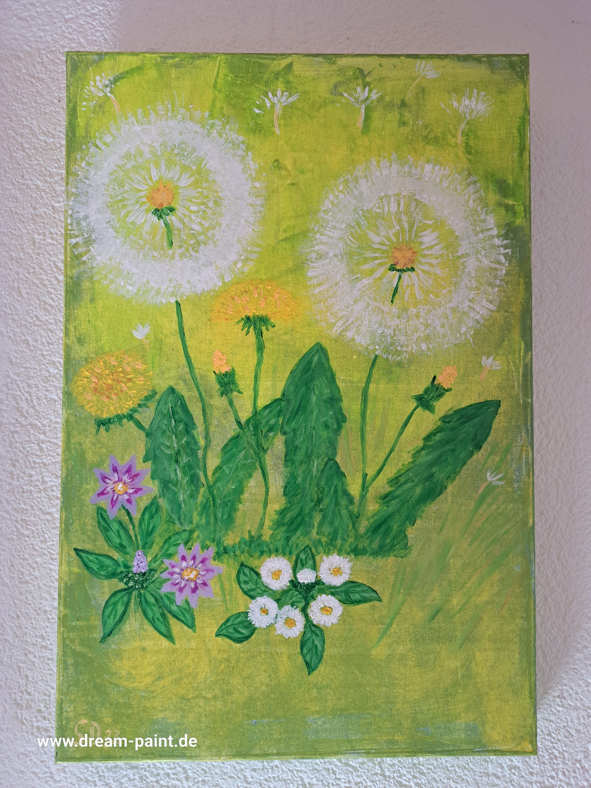 Ich liebe die Wiesen mit den gelben Blumen und der Pusteblume.